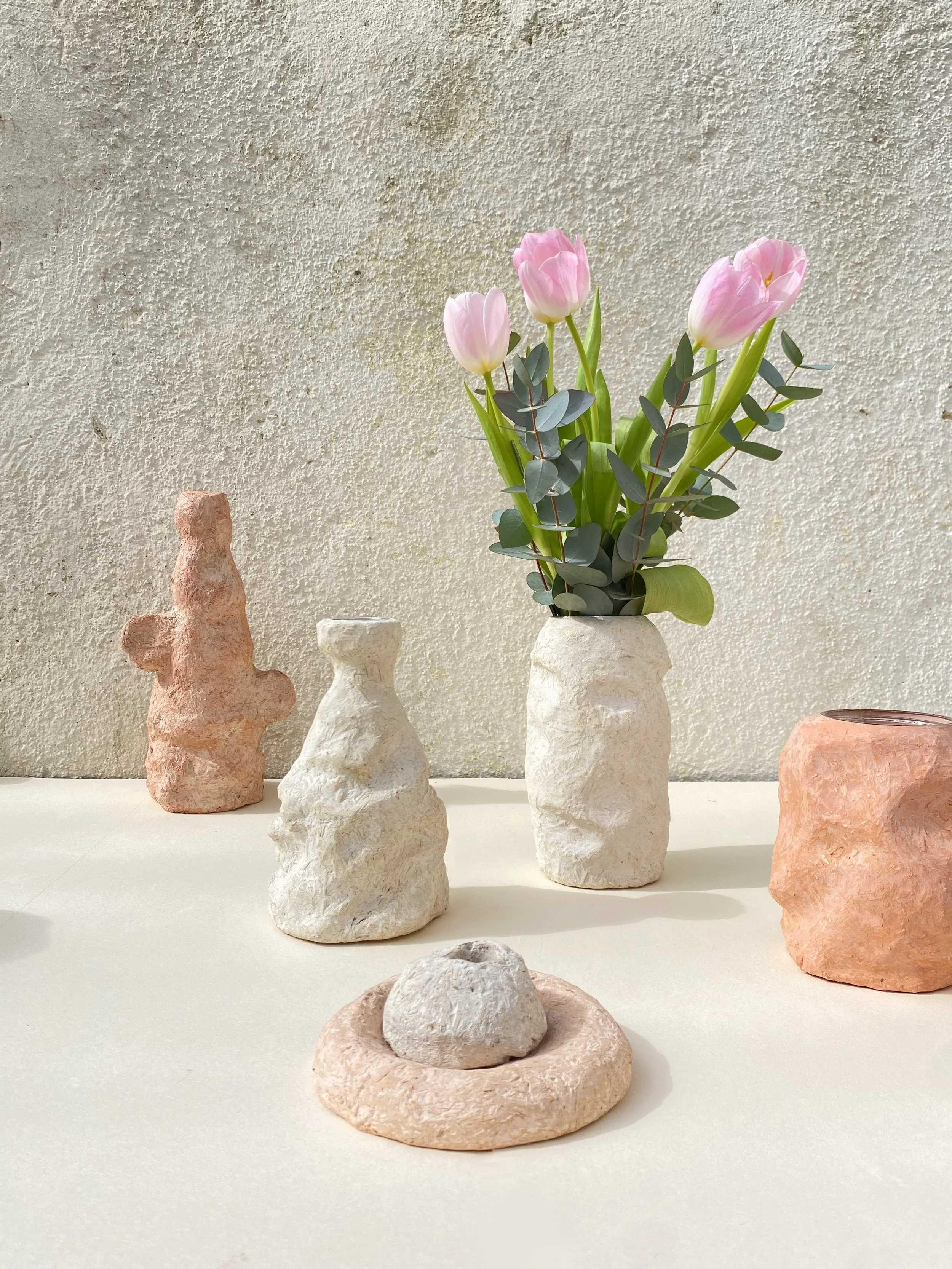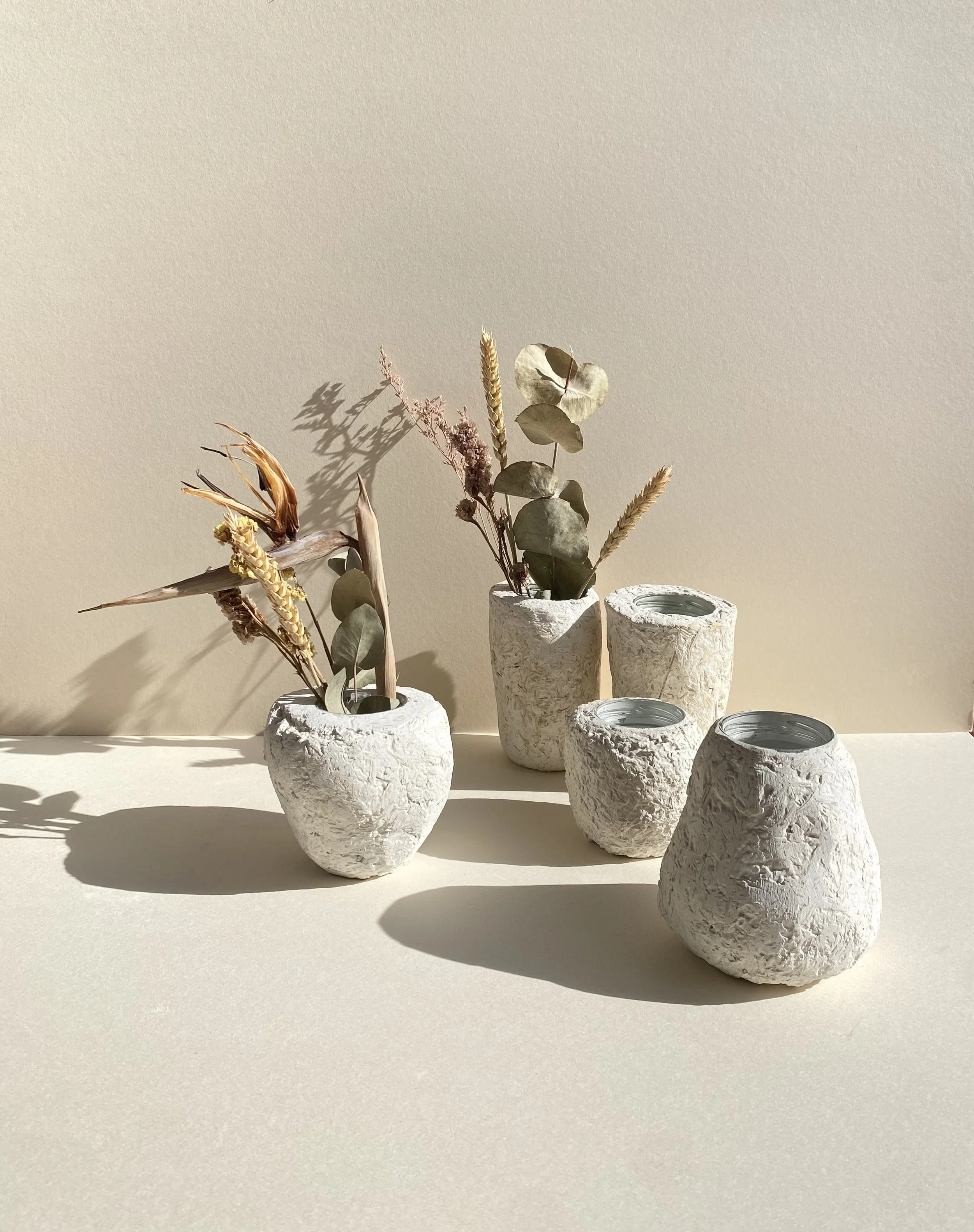 Vases de la collection ALIA (série d’objets upcyclé en béton chanvre)