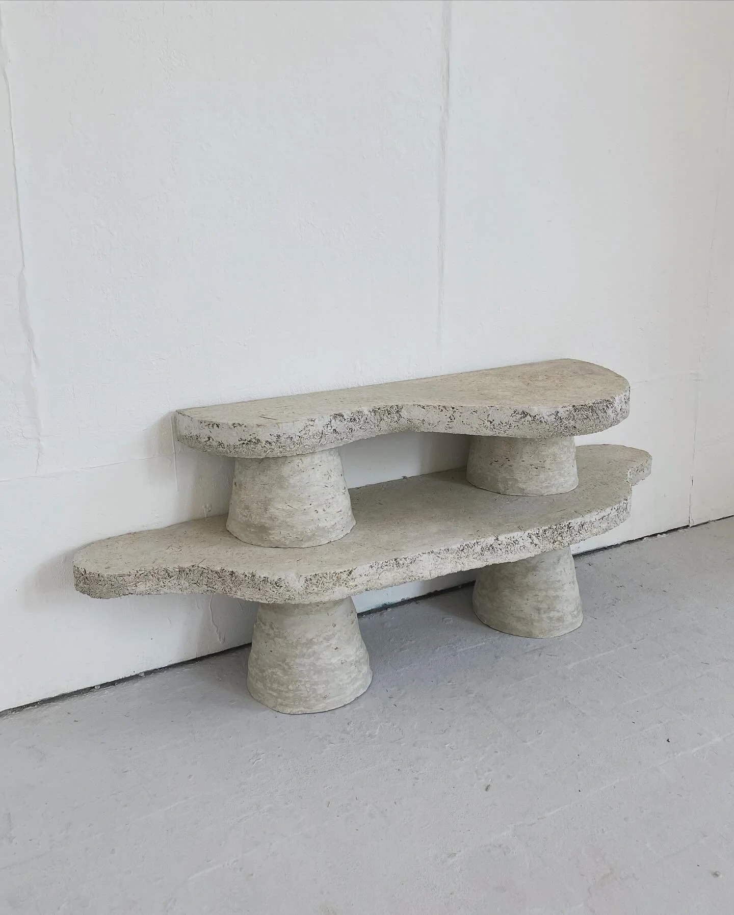 Le mobilier de la collection UNDAE se distingue par ses formes organiques, subtilement inspirées de l’océan. À l’image des vagues, chaque pièce incarne une fluidité et un dynamisme tout en évoquant légèreté et sérénité apaisantes. Ces créations faites à la main sont le fruit d’une longue expérimentation autour de la matière et des procédés de fabrication du béton de chanvre.
